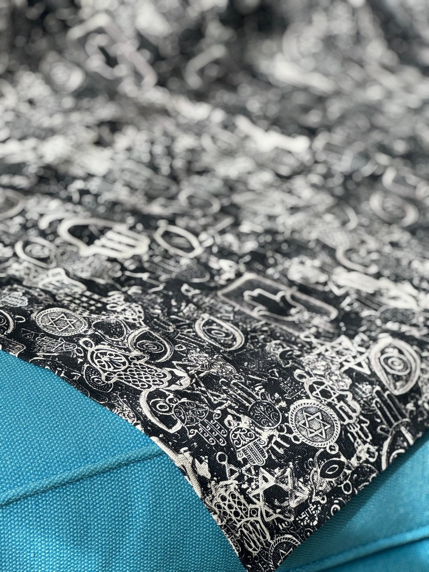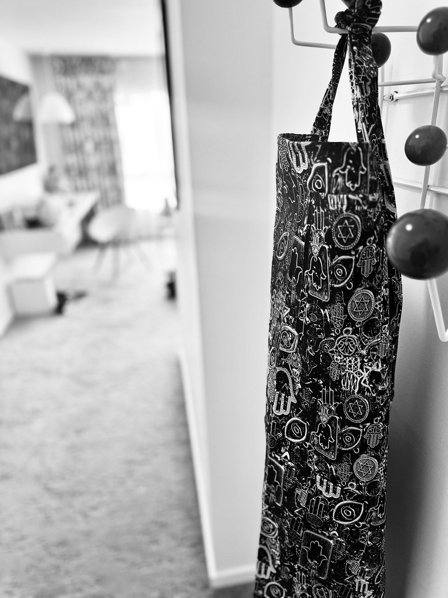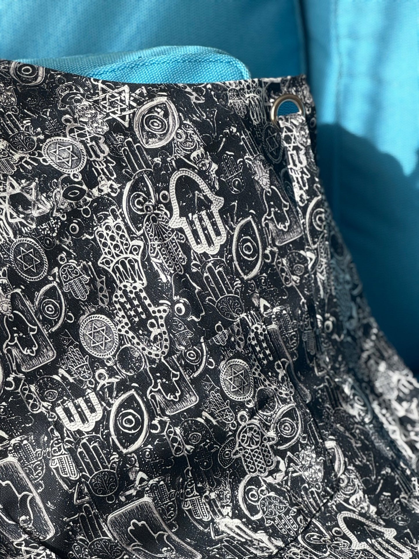 When you’re in the kitchen, our custom printed apron from Hamsas of Munkatch with the signature art images of layered Hamsa, Evil Eye, and Star of David charms is the ideal form of protection you need!