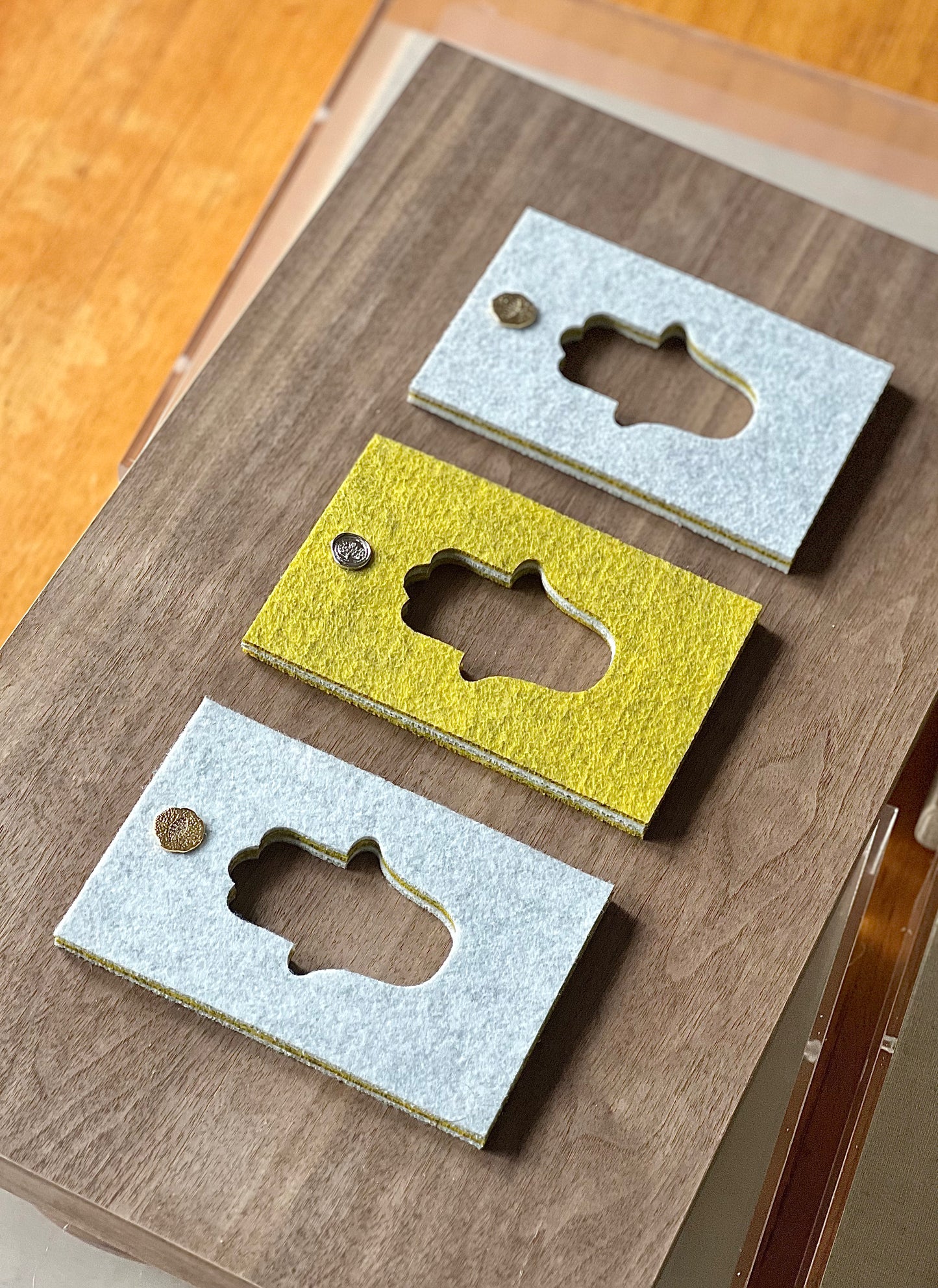 Layers of stacked jewelry-grade charms are neatly arranged and protected by resin on a 6-inch polished Onyx plate; they are displayed on a linen-wrapped plinth inside of a custom acrylic shadowbox. This piece of art makes a magnificent impact and is suitable for many design styles!