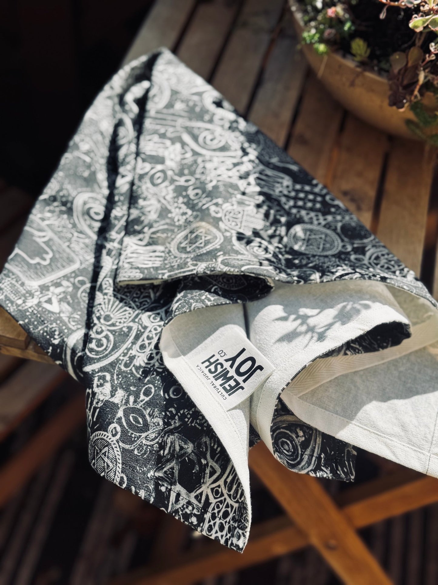 Brighten up your home with this festive kitchen tea towel by Hamsas of Munkatch. Each towel is made from 100% cotton fabric featuring a hanging loop at the back, and is printed in our signature black and white Hamsa pattern.