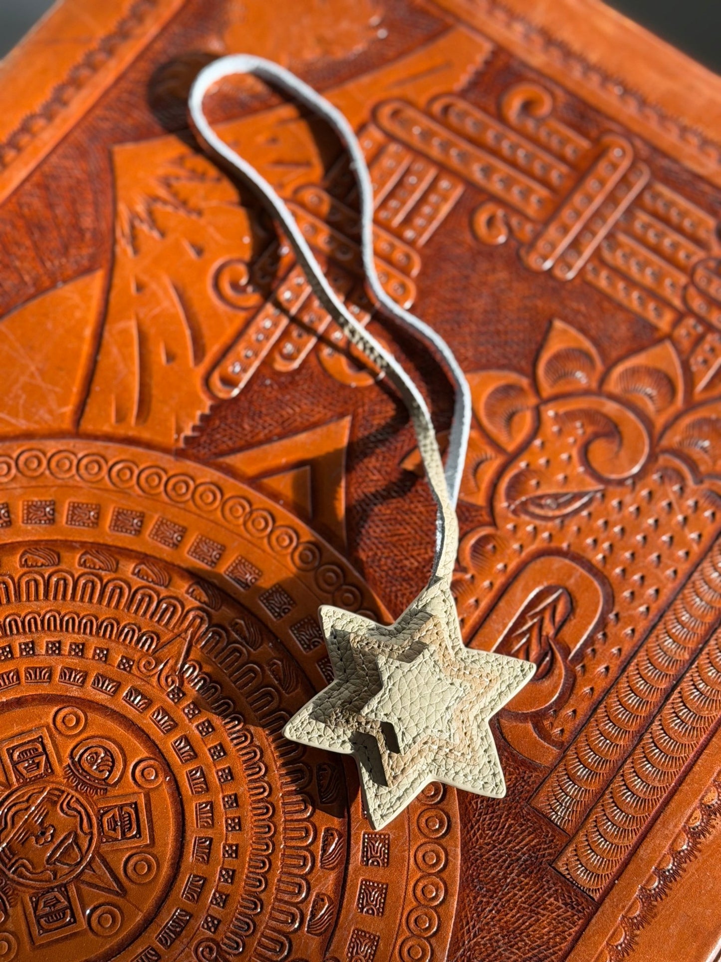 - STAR OF DAVID - layers of beige and white leather