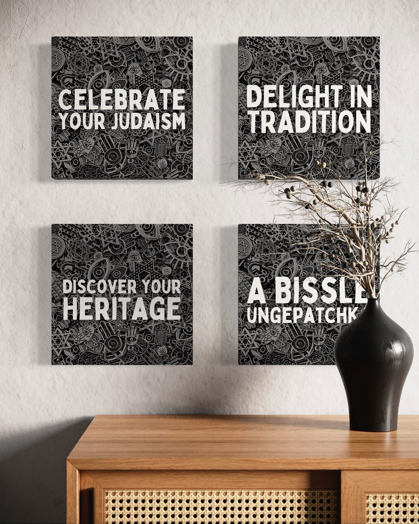 Hamsas of Munkatch emphasizes that the experience of Jewish traditions doesn't have to be confined to ritual artifacts alone, but should extend to everyday items, making them joyful, meaningful, and visually stunning. By incorporating these pieces into our surroundings, they serve as both a reminder and a tool for cultivating Jewish pride.