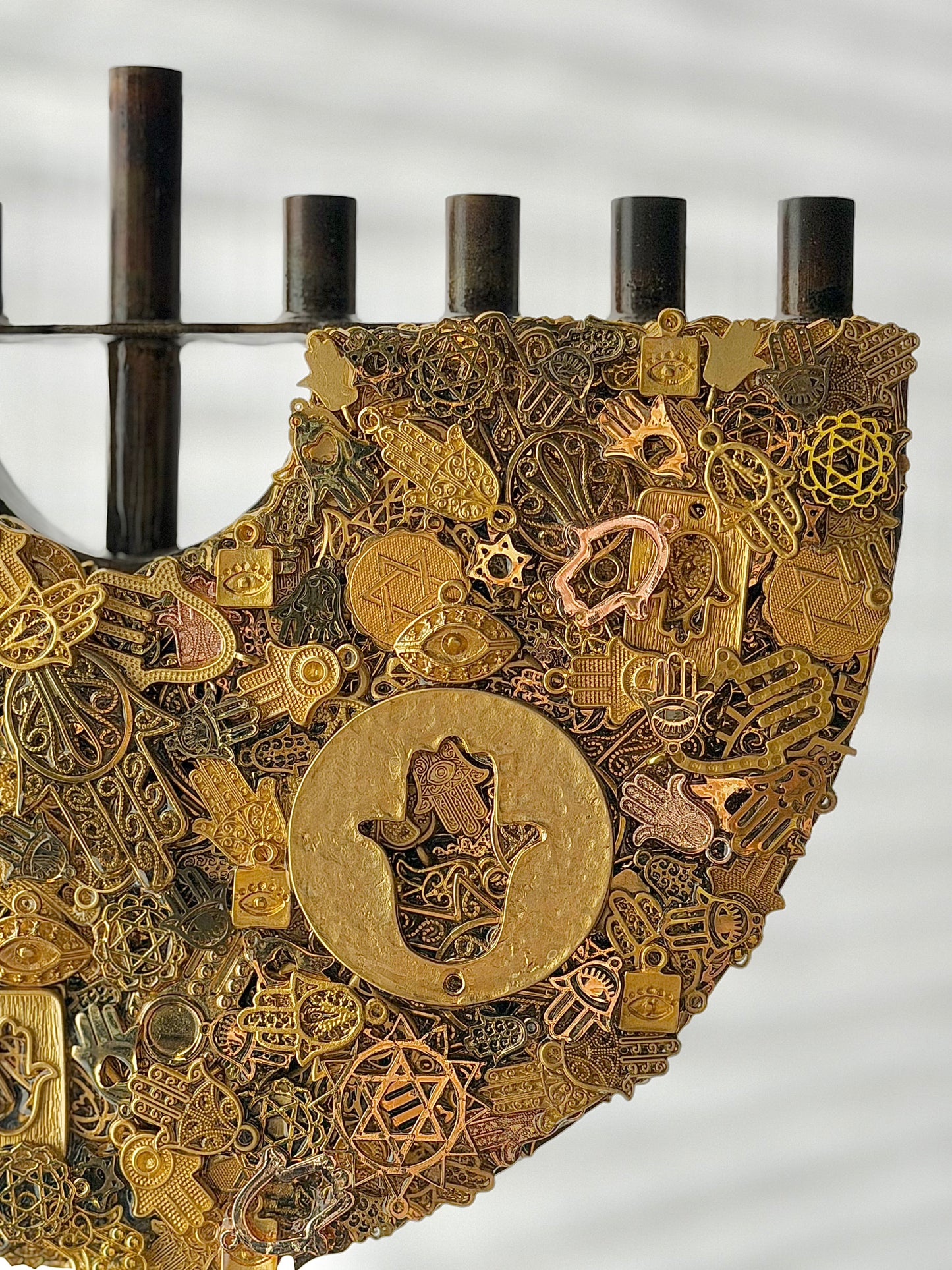 1 of 1 original creation - taking an already gorgeous Menorah and enhancing it with the magical art of Hamsas of Munkatch!